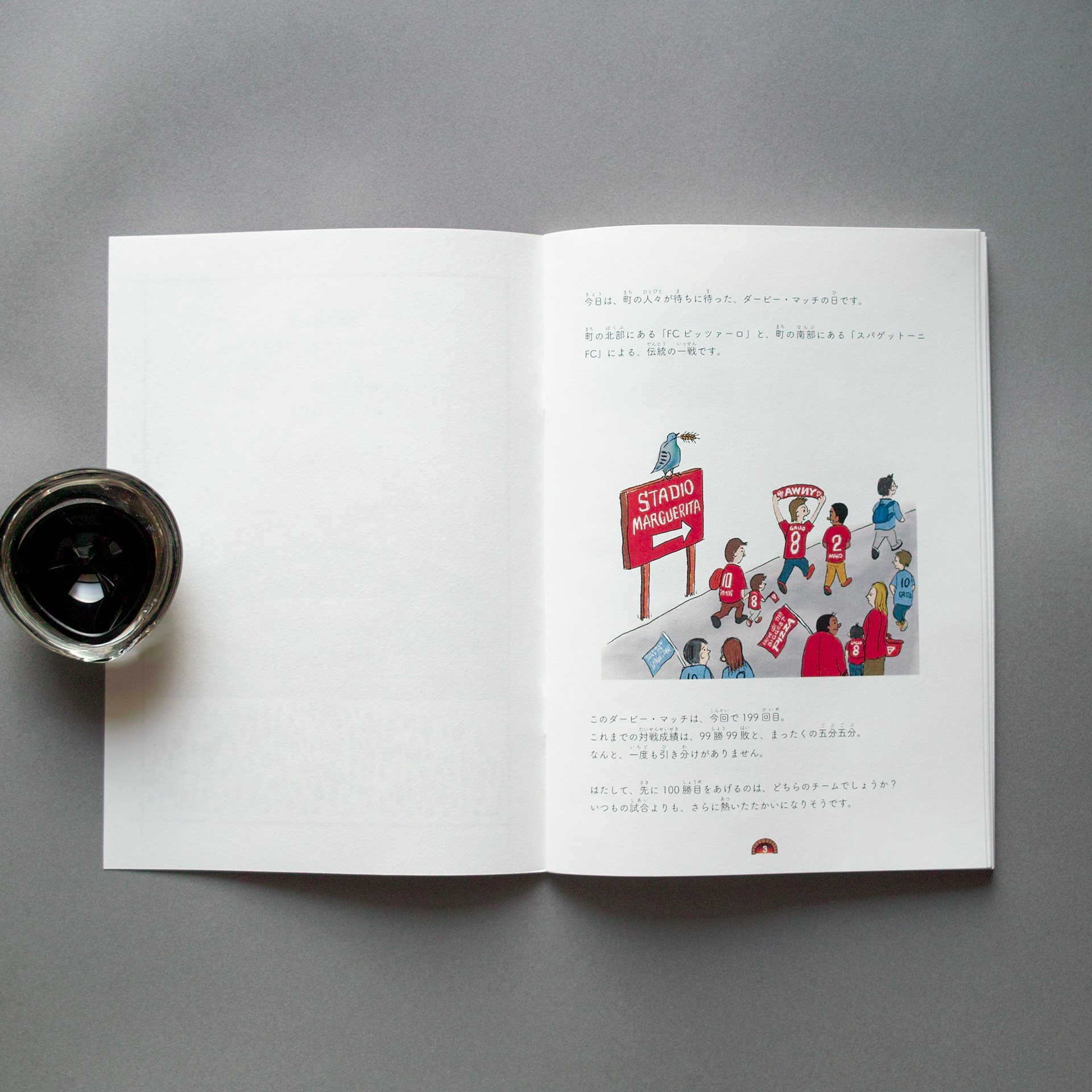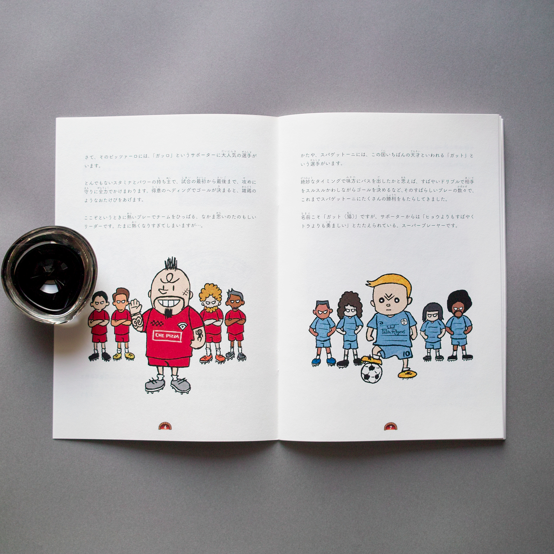 いよいよ迎えた199回目のダービー・マッチ。「灼熱の赤い窯」と呼ばれるFCピッツァーロのホーム「マルゲリータ・スタジアム」で行われた宿敵・スパゲットーニFCとの熱い試合を描いた、「えほん」風のZINEです。 FCピッツァーロの無骨なエース・ガッロと、スパゲットーニFCのスーパースター・ガットを中心に、勝利とプライドを賭けて激しくぶつかり合う両チーム。そして試合は意外な結末へ…。 サッカーが好きなお子様にもぜひ。