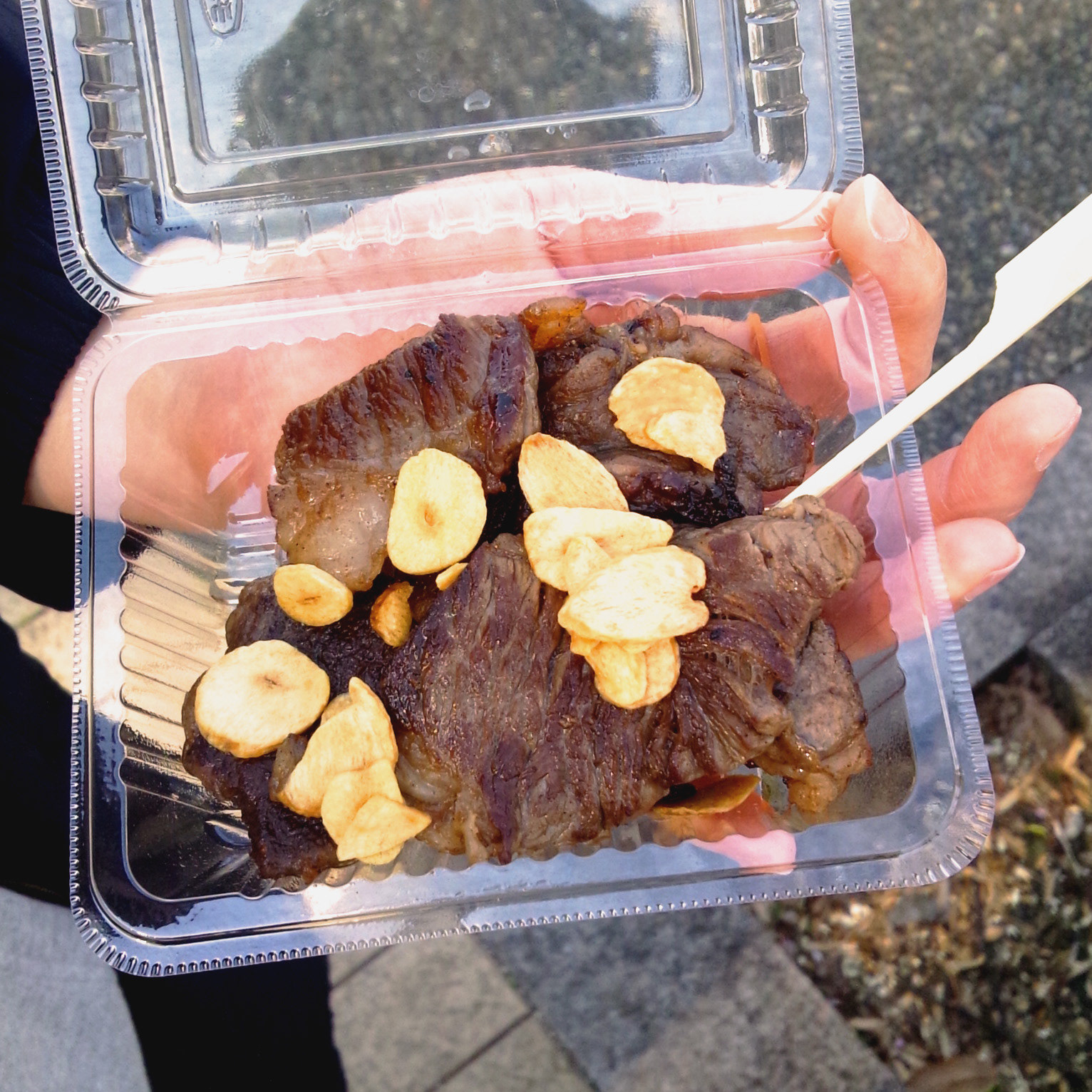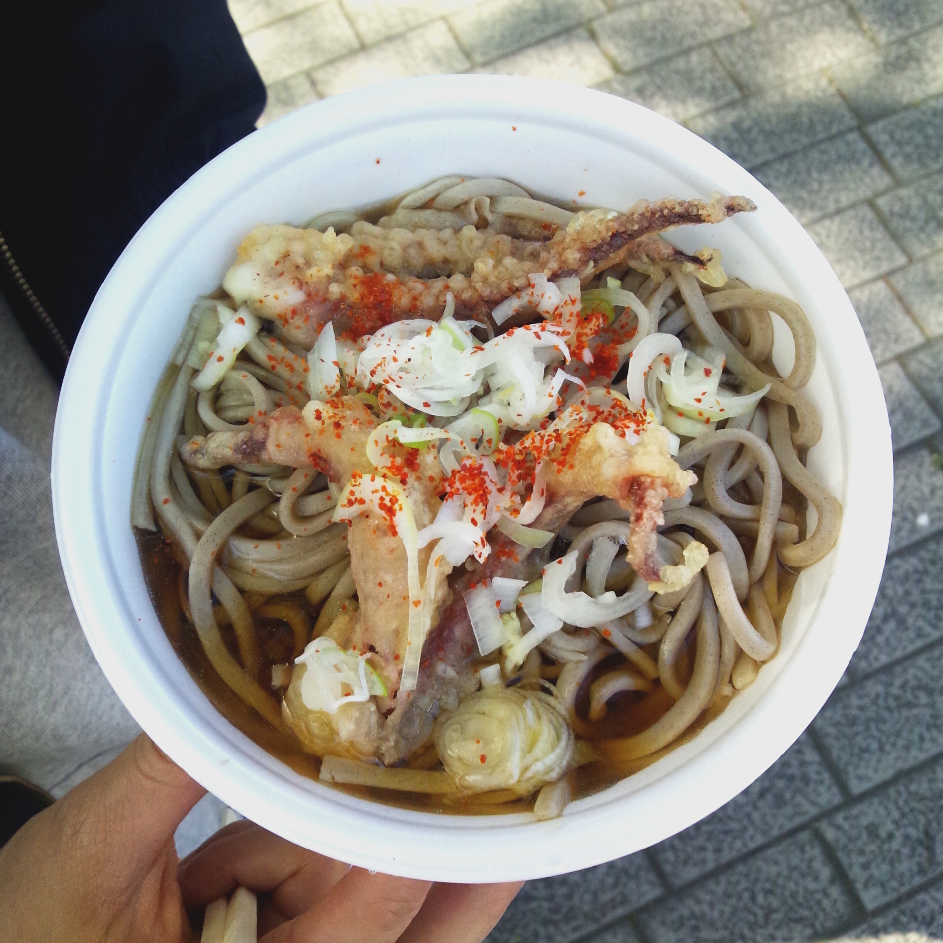 で、そのゲソ天そばを購入しようと並んでいたのだが、たまたまその日は店のガスコンロの調子が悪かったらしく、調理にてこずっているのが傍目からも見て取れた。その結果行列がすさまじく伸びていく中で、イライラが頂点に達した客の一人が「ねえいつになったらできるの?」とクレームを付けたが、店主は涼しい顔で「へい、もうすぐ出ますので~」とさらりと返した。さすが蕎麦屋だなと思った。太めのそばが実に美味しかったです。